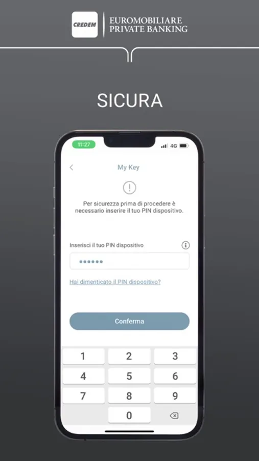 È facile, comoda e sicura grazie all'autenticazione tramite codice PIN dispositivo che potrai impostare in fase di configurazione dell'app.