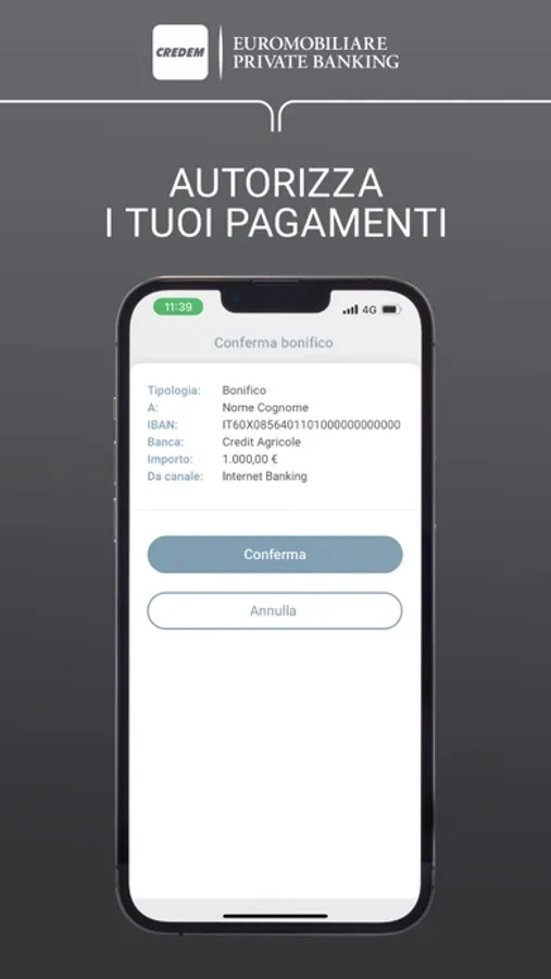 Business On App è l'app di Credem Euromobiliare Private Banking, dedicata alle imprese, per l'autorizzazione delle operazioni dispositive effettuate tramite Internet Banking (Business On).