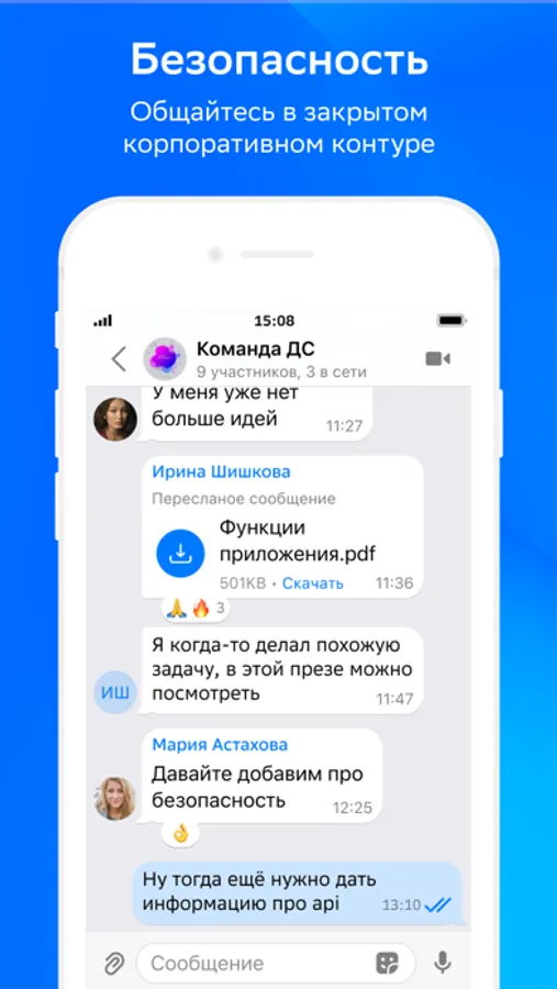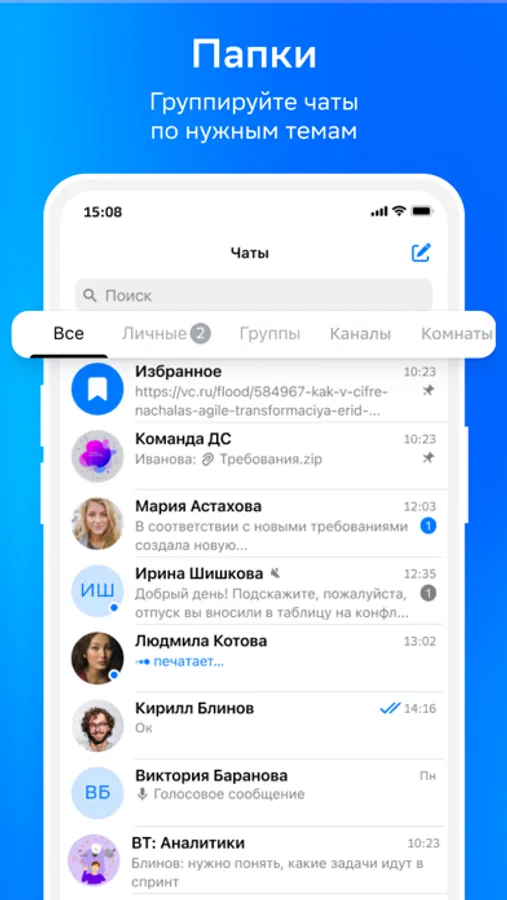 - Решайте задачи и достигайте целей быстрее с коллегами в личных и групповых чатах;