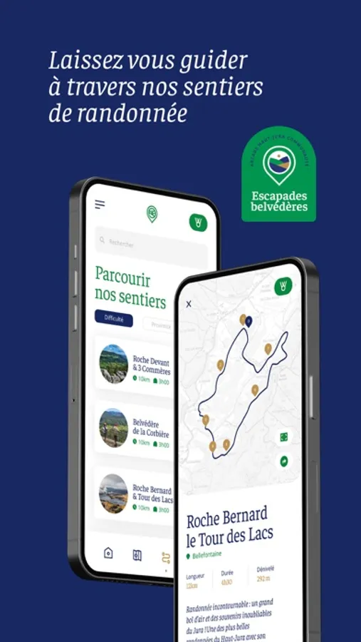 Intuitive et simple, l’application Escapades Belvédères vous propose de vous guider sur le territoire Haut-Jura Arcade, en vous faisant découvrir 14 belvédères qui vous feront admirer le relief jurassien entre combes et montagnes, lacs et rivières.