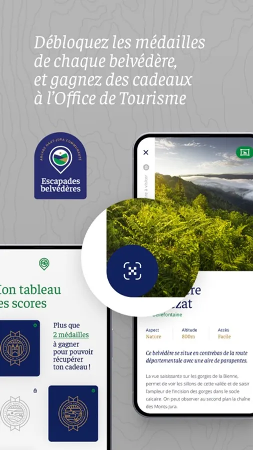 Un scanner de QR code se trouve également sur chaque page belvédère et vous permettra de scanner le QR code présent sur le panneau de lecture paysagère présent physiquement sur le lieu d’observation. Vous validerez ainsi une médaille par lieu de visite, et pourrez gagner une petite récompense à l’Office de Tourisme Haut-Jura Arcade.