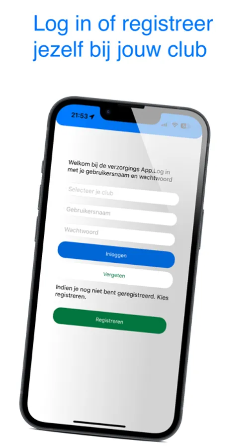 Als jouw club in de lijst van beschikbare clubs staat, kan je registreren via de App en op het moment dat de verzorger / administrator van jouw club jou heeft gekoppeld aan een speler profiel binnen het system.