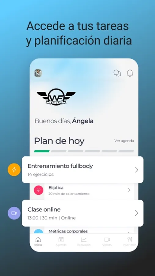 La App es súper intuitiva y fácil de manejar. En Inicio verás tu planificación del día, resumen semanal, más de 200 vídeos, recetas y documentos compartidos que te pueden resultar de gran ayuda.