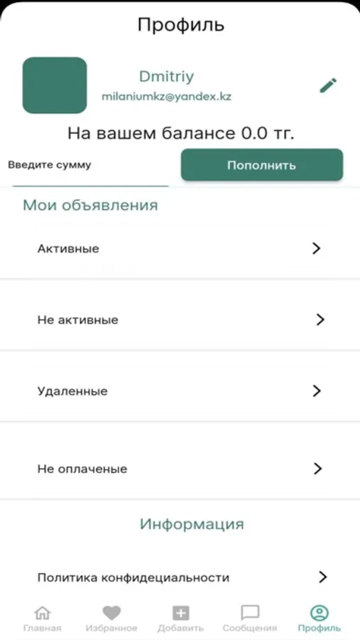 - Публиковать объявления, добавлять фото и описание товаров