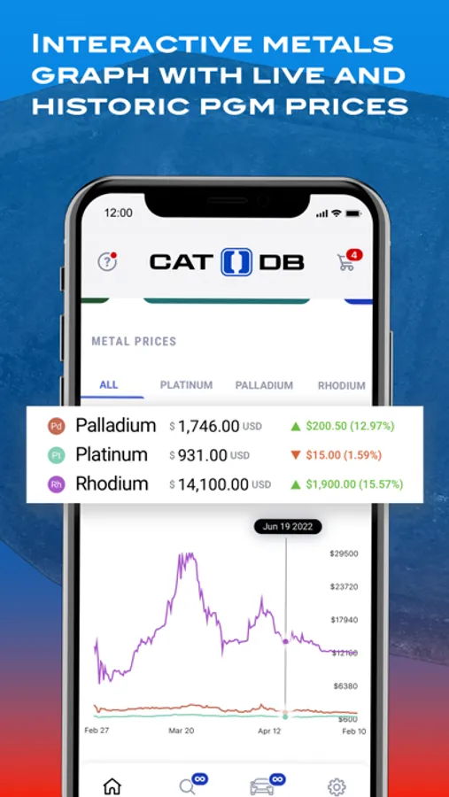 Watch all catalytic metals live in one graph. Prices update every 15 minutes. 3 years of historic pricing data.