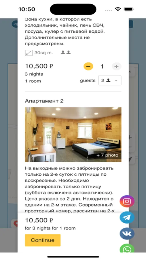 При бронирование есть возможность указать количество гостей, и ознакомится с полным списком предоставляемых услуг.