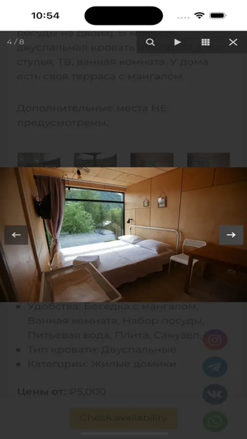 Отдельно доступен каталог мест проживания, где каждое место подробно описано и содержит удобную фотогалерею.