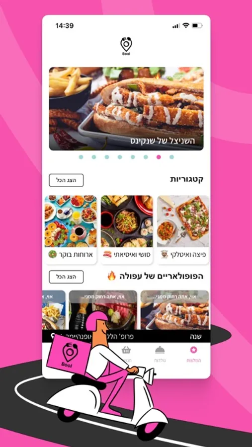 בול נותנת מענה מלא עבור תושבי הפריפרייה - עכשיו בלחיצת כפתור הזמינו אוכל מכל המסעדות באזור שלכם , קליק אחד ואנחנו אצלכם עם משלוח מהיר עד פתח הדלת. אפליקציית בול נותנת לכם מענה עשיר שבו אתם יכולים להזמין עד אליכם מעשרות מסעדות ועסקים , להזמין מנה מועדפת, זר פרחים או מתנה מחנות מתנות ובנוסף מצרכים מהספורמרקט הקרוב לביתכם .