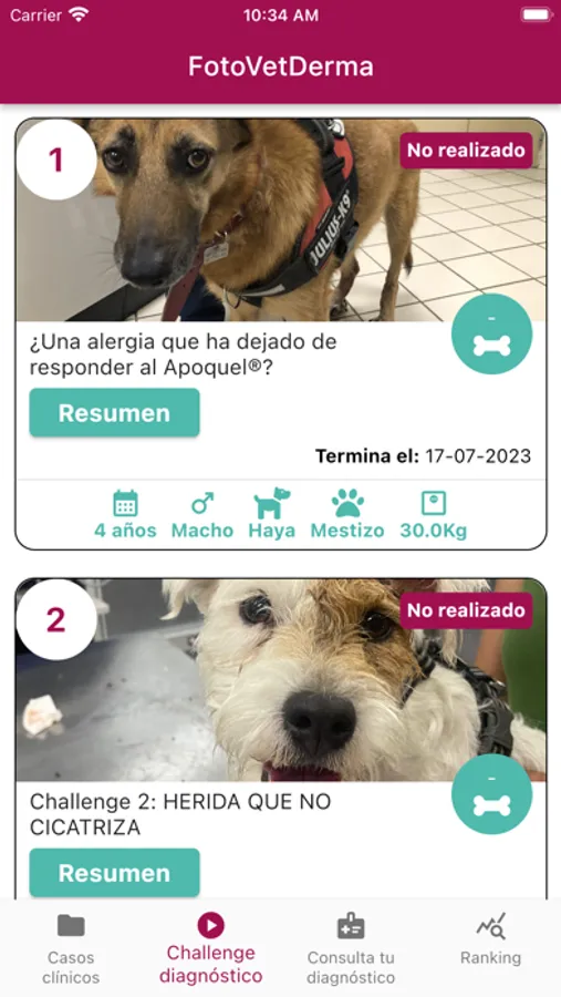 Semanalmente, se publicará un reto con la resolución de un diagnóstico y un tratamiento en función de la historia clínica e imágenes de casos clínicos relacionados con procesos dermatológicos en el perro, elaborados por los expertos del Comité Científico.