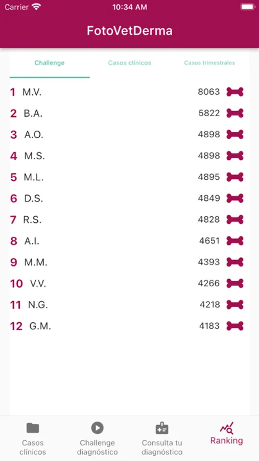 Cada caso clínico cargado suma 500 ptos. en la categoría de challenge diagnósticos-terapéutico.