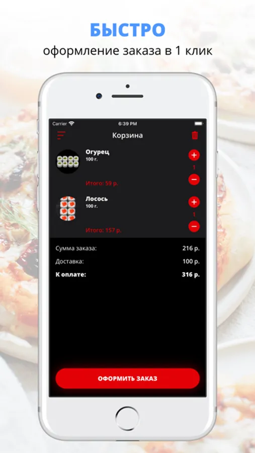 Скачивайте наше приложение, оформляйте заказ и наслаждайтесь любимой едой, где бы Вы ни были! Приятного аппетита!