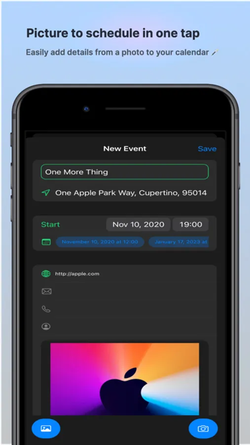SnapCal can parse titles, locations, dates, Instagram accounts, phone numbers, email addresses and websites. Picture perfect scheduling: If any of these items are in a photo SnapCal can find it and copy it for you. No need to manually type everything you see into your Notes or Calendar app.