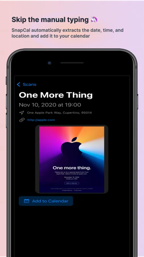 Snap and schedule with SnapCalendar. Quickly turn screenshots into organized information on your Calendar.