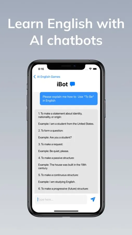 English Chatbot is a mobile app designed to help you learn English quickly and easily. With an interactive chatbot interface, you can practice your English conversation skills by talking to the chatbot, who will listen to your pronunciation and respond with appropriate corrections. You can also learn new words and phrases, test your knowledge and practice writing by using the chatbot's built-in exercises. With English Chatbot, you'll be able to improve your English in no time!