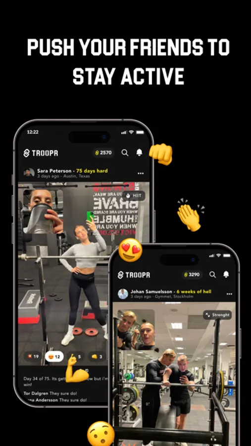 Level Up Your Fitness with TROOPR! Join bootcamps, set your fitness goals, SweatCheck, and track your progress like a boss in TROOPR. Challenge friends, and unlock exclusive offers and freebies. React to others' SweatChecks, give your pals a boost, and watch the motivation roll in. The ultimate app to smash your fitness goals together!