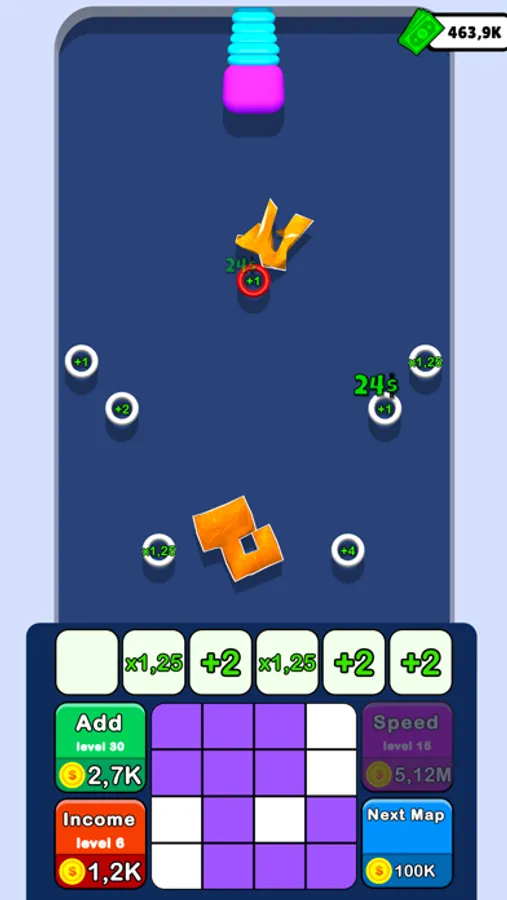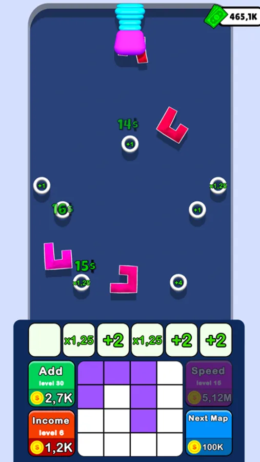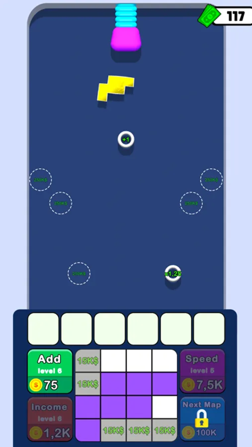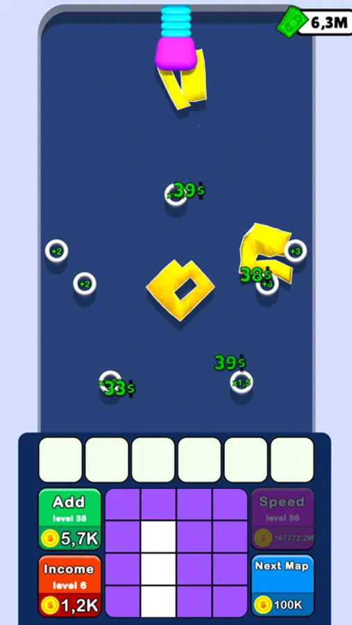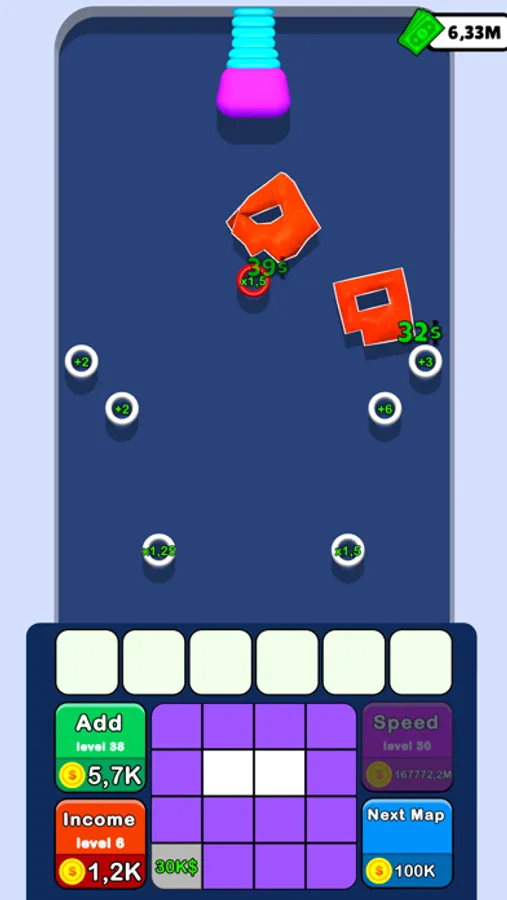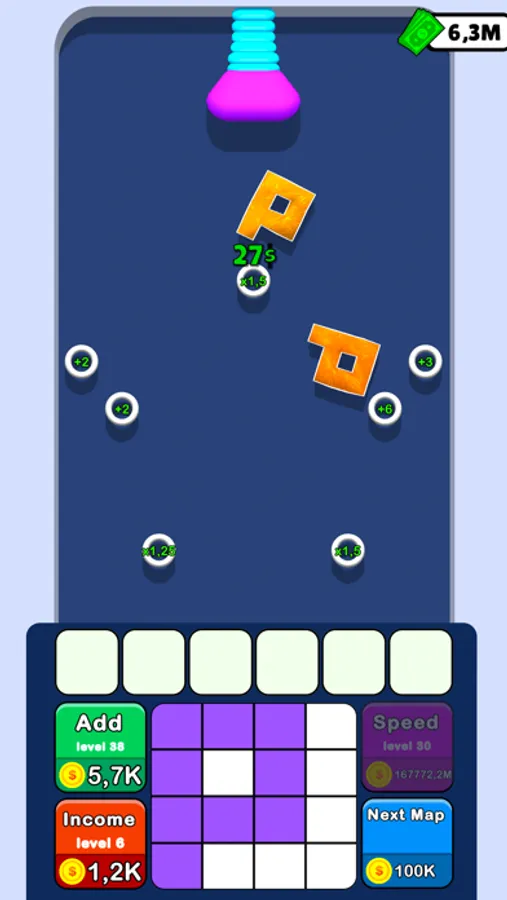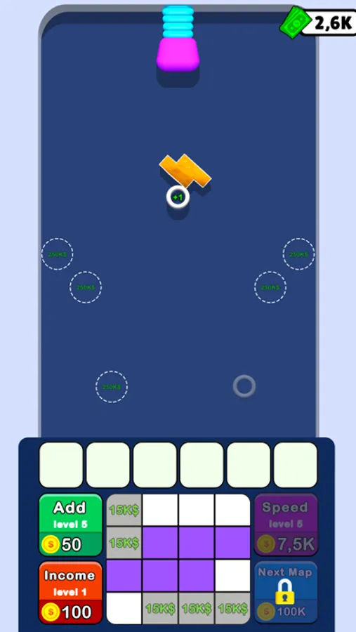 Draw the bouncing object, merge bouncers and earn money to evolve your map