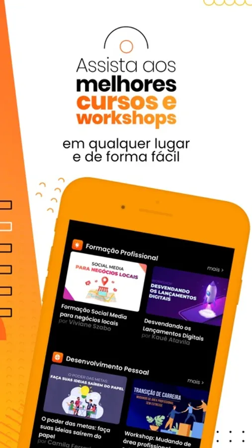 Com o app é possível assistir os melhores cursos e workshops de empreendedorismo digital em qualquer lugar onde você estiver.