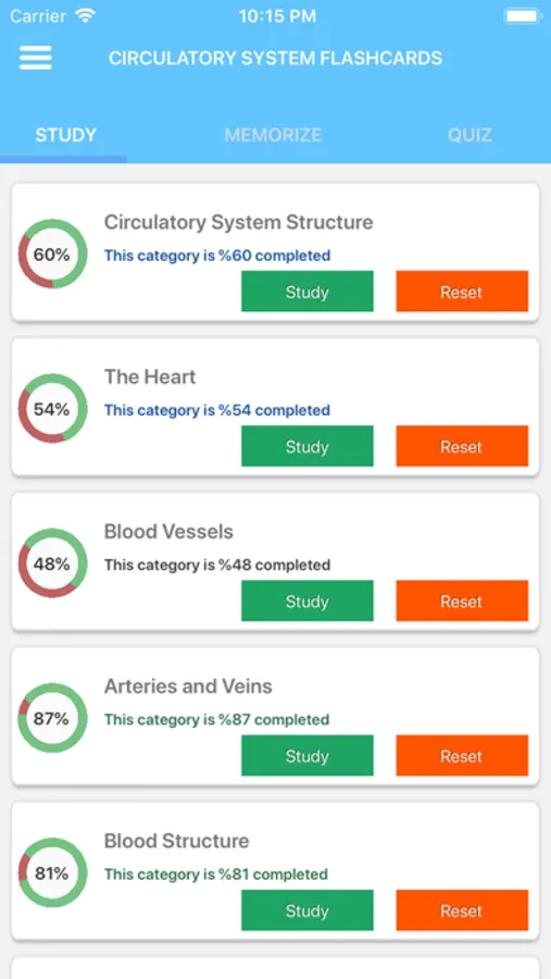 With our app you learn all the important knowledge of circulatory system. App includes study mode, memorize mode and quiz mode for self learning on the topics of cardiovascular system.