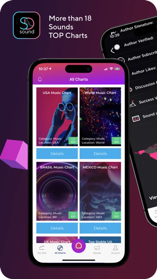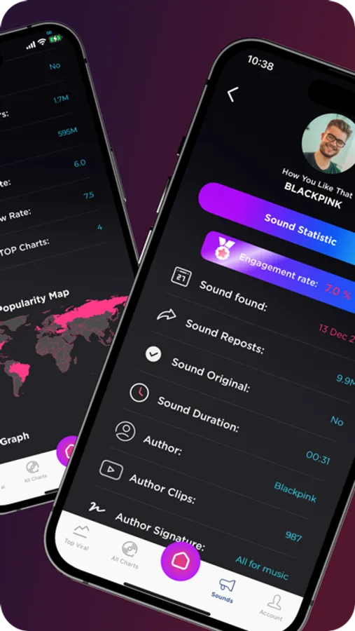 Top charts, historical growth charts, smart filters and sophisticated sound aggregation tools provide state of the art statistics and listening tools to discover new sounds, new talent and emerging trends to find inspiration and create viral content!