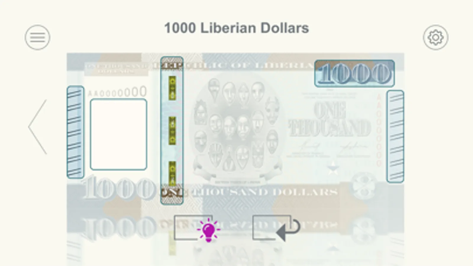 The "LBR Currency" app allows users to discover the design and the security features of the new Liberian banknotes brought into circulation in 2022. It explains interactively how the security feature react when a banknote is tilted, held against the light, or if a magnifier glass is used.