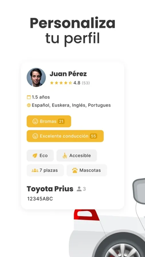 • Personalized profile: The taxi driver can value his skills such as the years of experience he has, the languages he speaks, the comforts he offers, etc.