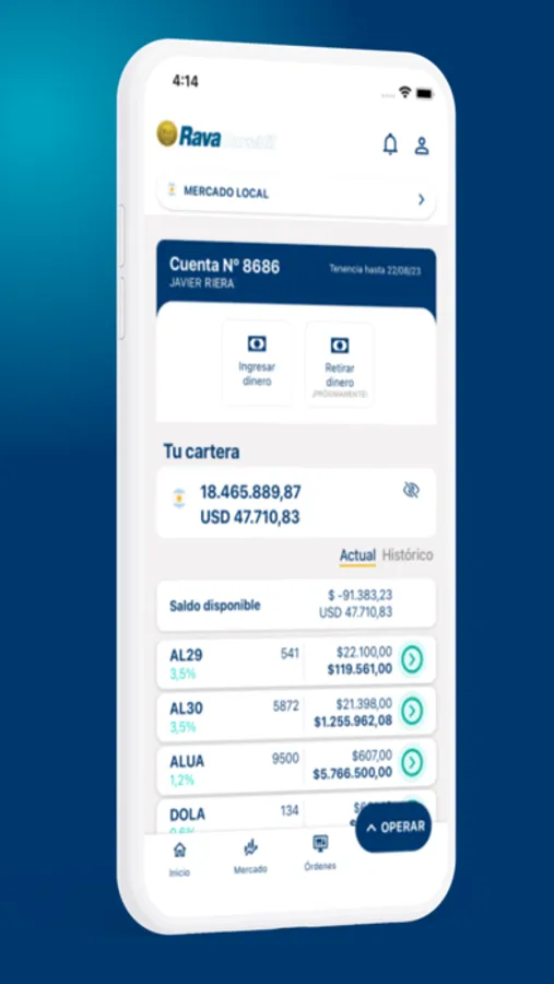 En Rava operamos en el mercado de capitales desde 1955, y nuestra principal motivación es acompañar a quienes buscan potenciar sus ahorros e ingresos mediante operaciones en los mercados nacionales e internacionales. Desde 1998 contamos con una plataforma web que les permite a nuestros clientes canalizar sus operaciones de forma remota.