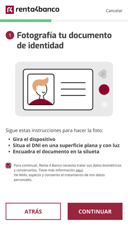 Con esta aplicación los usuarios podrán realizar su identificación para nuevas altas de clientes, actualización de documentos de identificación y otras gestiones relacionadas con la identificación de usuarios en Renta 4 Banco, de forma sencilla y segura.