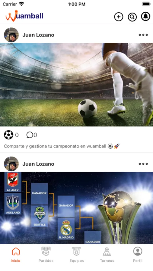 Wuamball es una herramienta digital que combina dos características. El primero trabaja como gestor de torneos de fútbol y el segundo es una red social deportiva.