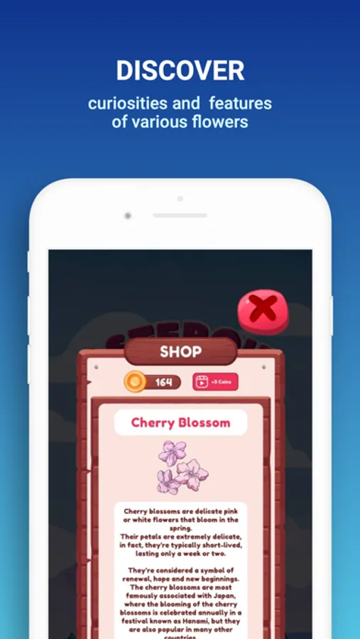 - Use coins to buy items in the shop: buy power-ups and unlock as many flowers as possible to create an increasingly colorful world!