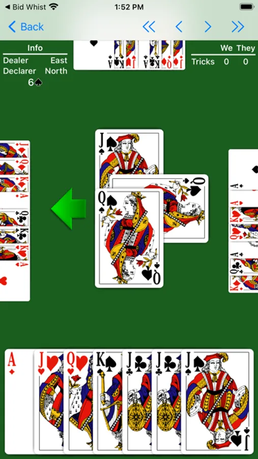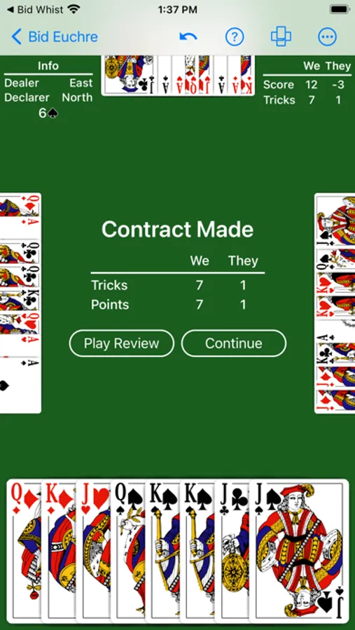 • Play review. Step through the play of the hand to review and improve your play.