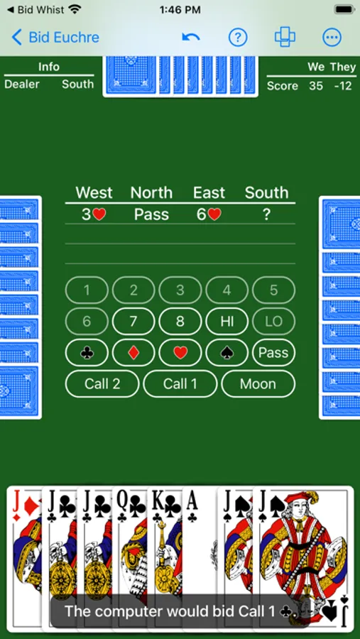 • Bid and play hints. Uncertain of what to bid or play? See what the computer would do!