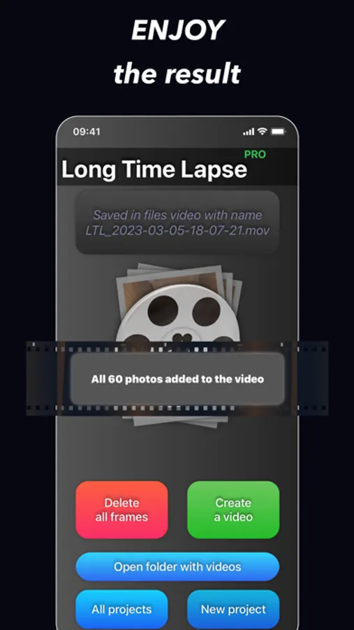 - The ability to access all the frames taken, right during the shooting, without interrupting the process (if the function of uploading photos to iCloud is enabled). Thanks to this, you can create videos in third-party video editors on other devices without interrupting the current shooting. It also allows you to see the result right during the shooting.