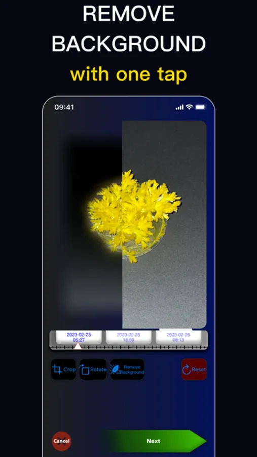 - Ability to remove the background and trim the frame, placing a timestamp on the video.