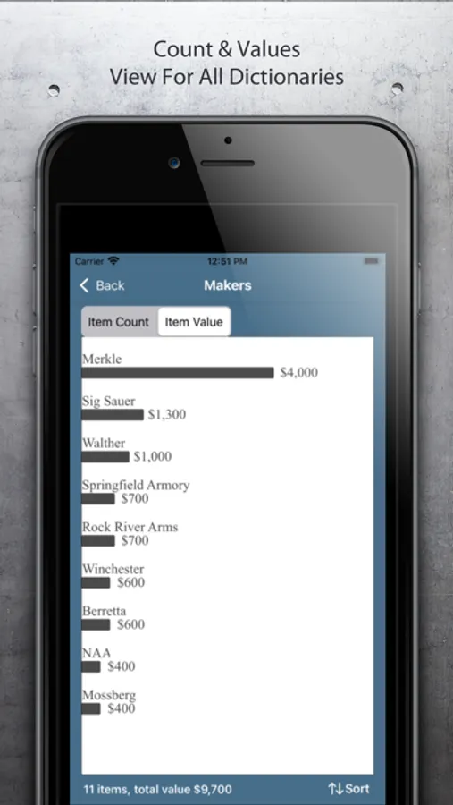 ** War Chest provides a place to store information about non-firearm related items. Keep records for your knives, swords, axes, non-lethal defensive items, tools, etc.. Keeps track of the total count and value for all items.