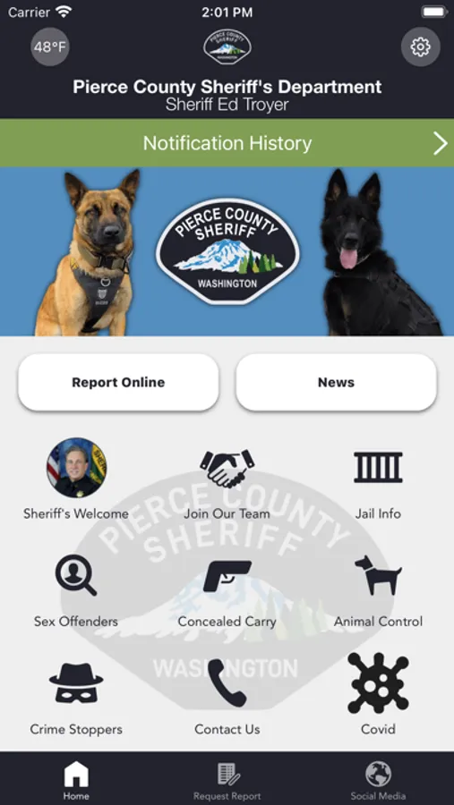 The Pierce County Sheriff’s Department mobile application is an interactive app developed to help improve communication with area residents. The Sheriff App allows residents to connect with the Pierce County Sheriff’s Department by reporting crimes, submitting tips, and other interactive features, as well as providing the community the latest public safety news and information. The app is another public outreach effort developed by the Pierce County Sheriff’s Department to improve communication with county residents and visitors.