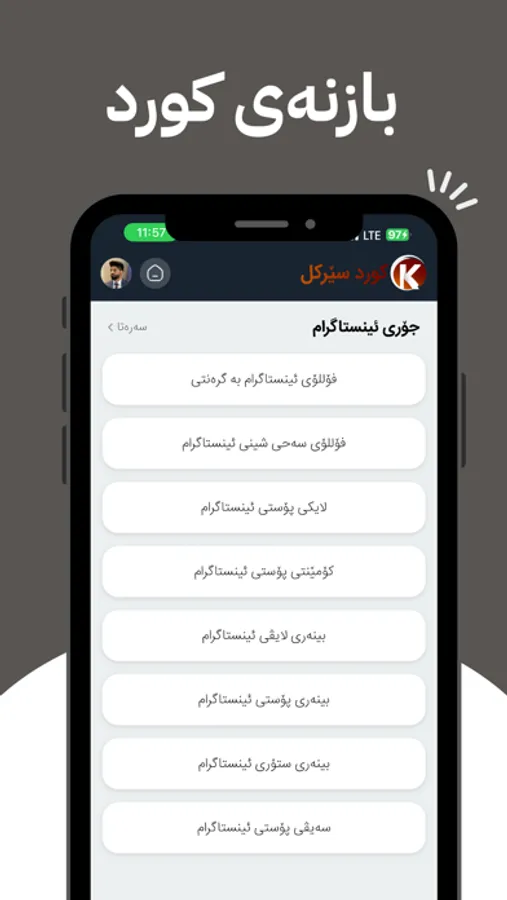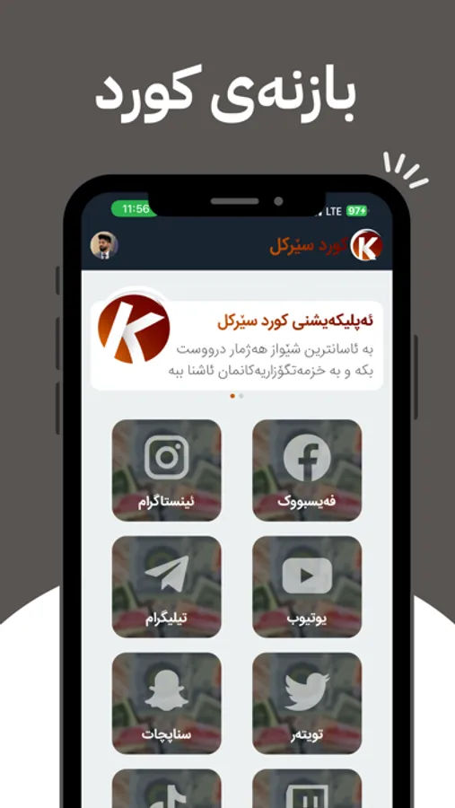 کورد سێرکڵ ئەپڵیکەیشنێکی کوردیە کە تێیدا گشت خزمەتگوزاریەکانی سۆشیاڵ میدیا بەردەستە وەک ( لایک ، فۆللۆ ، بینەر)ی گشت سۆشیاڵ میدیاکان بە بەرزترین کوالێتی و هەرزانترین نرخ .