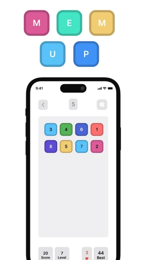 "MemUP" is a game that challenges players to test their memory skills by remembering and recalling sequences of numbers.