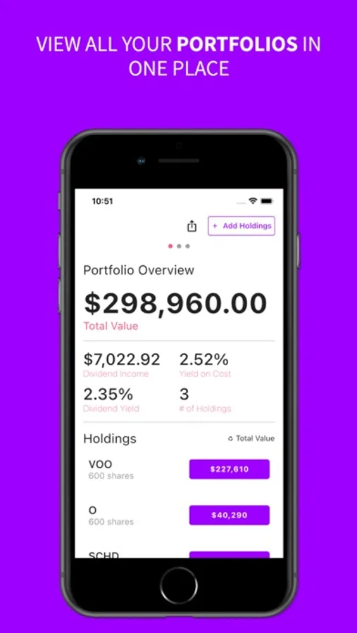 Purple Brick is the ultimate dividend tracking app that helps you keep track of your investment portfolio and stay on top of your dividend payouts. Whether you're an experienced investor or just starting out, Purple Brick makes it easy to stay organized and informed. With our user-friendly interface and robust features, you'll never miss a dividend payment again!