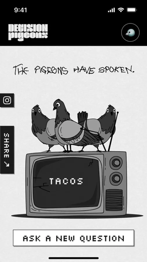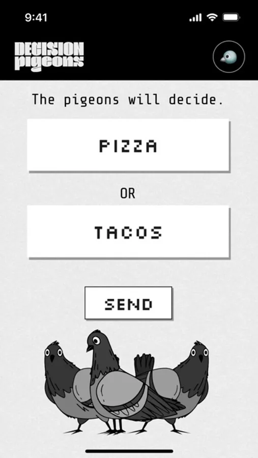 Never be the bad guy again. Deflect responsibility and let the pigeons decide. Pizza or tacos? Sci-fi or Rom-com? Divorce or therapy? Don’t stress. Summon.