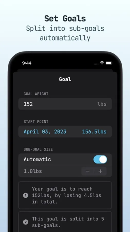 Set a Goal Weight — Split into sub-goals to stay motivated through small wins.