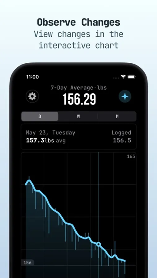 > Use the interactive chart to get an overview of your daily, weekly and monthly average weights
