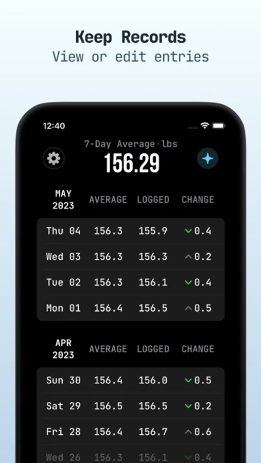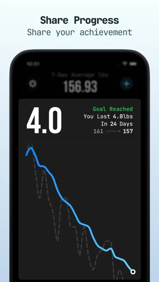 TapTrack calculates your average weights to smooth out these fluctuations, providing a clearer picture of how your weight is changing over time.