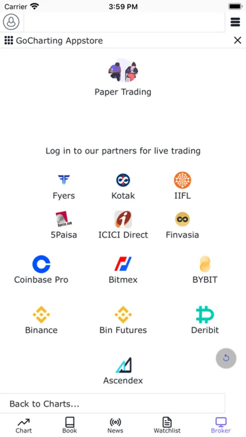 GoCharting is an Advanced OrderFlow Charting & Trading App that supports multiple asset classes including Stocks, Futures, Options, Commodities, Forex and Cryptocurrencies.