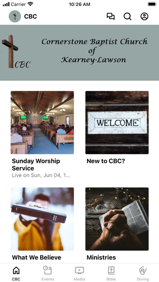 Welcome to the official app of Cornerstone Baptist Church of Kearney-Lawson! Download this app to stay connected with CBC. With this app you can: watch live stream feed; watch or listen to past messages; stay up to date with push notifications; view calendar of events; and download messages for offline listening.