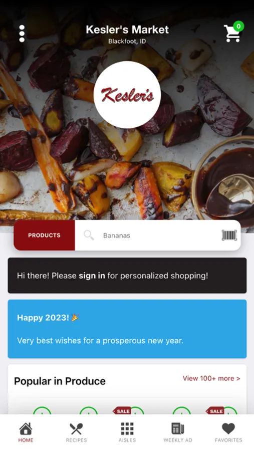 Order your groceries from Kesler Market on the go on your mobile device or from your iPad on your couch. Our award-winning grocery app makes grocery shopping a breeze with quick access to our weekly circular, an easy-to-use product search, detailed product details and labeling, tasty recipes, and family meal planning tools. What could be better than that?