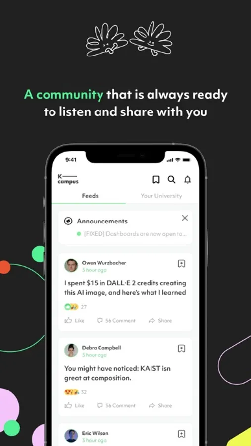 - Communicate with other students and prospective students in the K-campus community