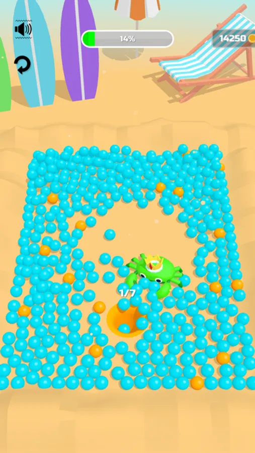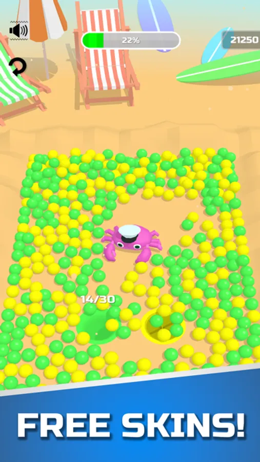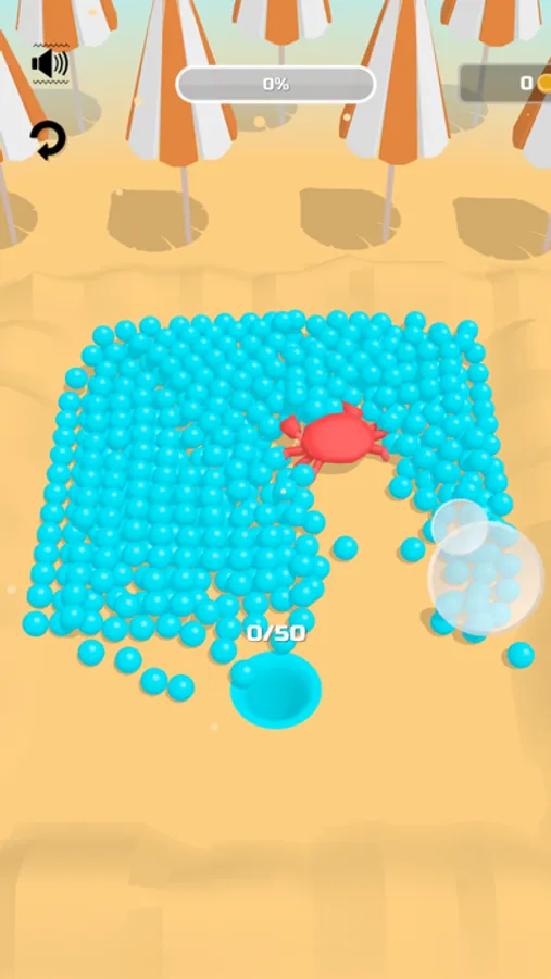 Use the crab claws to redirect the balls you have choosen, place them in the right hole to finish or even to open new ones.