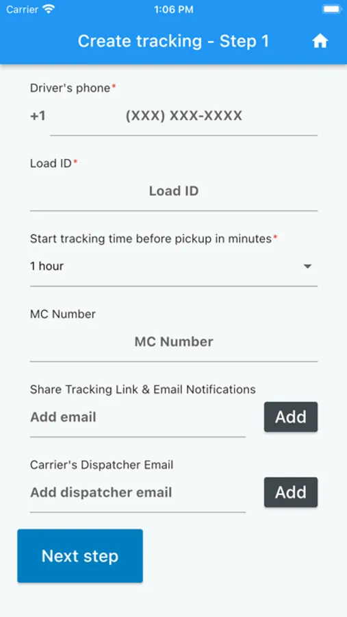 CarrierView enables brokers to get real-time load tracking. Broker can initiate tracking using driver's phone number and driver will receive a text message with the link to download driver application which will enable him to transmit his location data to the broker, customer or shipper.