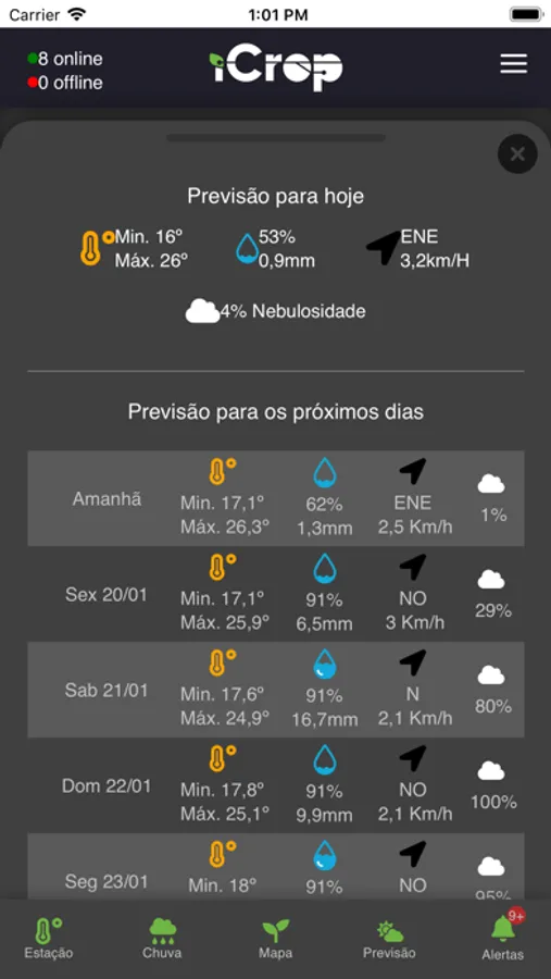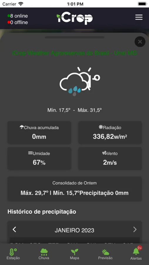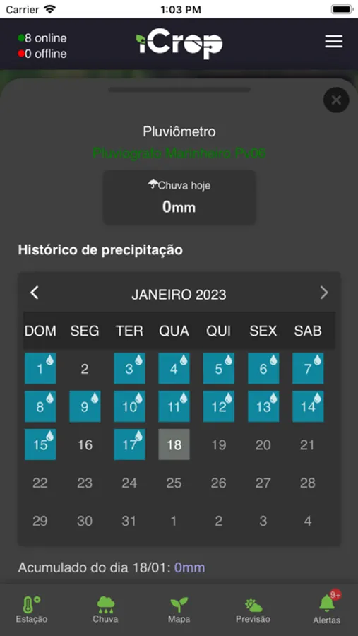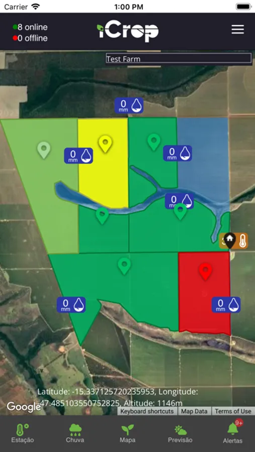 O aplicativo Performance da iCrop é uma versão otimizada do webapp piloto.icrop.online. Através dele nossos clientes que possuem áreas não irrigadas podem monitorar as áreas ativas, ter acesso aos dados dos pluviografos em tempo real e acesso a dados da estação e previsão do tempo e gerenciamento dos talhões.
