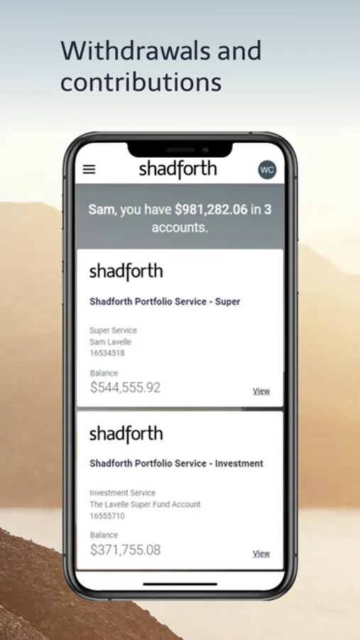 • View your Shadforth Portfolio Service Super, Pension and Investment accounts.